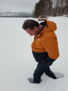 Prachtig onderkomen, straks beter bekijken. Nu de natuur in. Wat is het hier waanzinnig mooi! Al snel zakken we nagenoeg iedere stap weg in de sneeuw en beseffen dat sneeuwschoenen hier verdraaid handig zijn. Die staan helaas nog in het hotel. We strompelen terug, wat een mooie witte stille wereld. Tijd voor een aperitief. Wat hebben we onverwachts een leuk gesprek met Agnes en Rob uit Groningen! We hebben het over de prijs van de drank die hier in Finland vast aan de hoge kant is. Maar niemand vraagt om de prijs. Soms moet je niet alles willen weten.