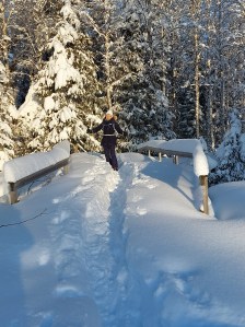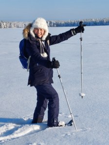 Nou ja, wéér goed geslapen! Zou de zuivere gezonde lucht van Lapland ermee te maken hebben? Vandaag deze maar extra diep opsnuiven, laat die neuzen maar eens genieten. Dat kan makkelijk want we gaan een flink stuk lopen. Een pracht wandeltocht door dit winterse Paradijs met besneeuwde bomen, bevroren rijp en over een groot hard bevroren meer waar ik onbewust toch naar wakken speur. Je hoort alleen het knisperende geluid van de sneeuw onder je voeten. Het heeft iets magisch. Zo stappen we vele kilometers door een gebied dat hier 2 miljard jaar geleden werd gevormd met zacht rotsmateriaal. Wat weg erodeerde tot er hard kwartsiet overbleef en waar wij nu overheen lopen. Werkt uitermate relativerend. Terug van onze tocht hebben we een saunabezoek gepland. In Finland is de sauna een belangrijke plek. Men ontmoet elkaar daar, zakendeals worden er gesloten, ze reinigen er hun ziel, zaligheid en lichaam. Er zijn miljoenen sauna’s in dit land en een Fin gaat er minimaal één keer per week heen. Okee, okee dan gaan wij ook. Ik weet dat ik heel veel mensen tegen me in het harnas jaag maar ik vind het maar een gedoe. Hoopvol kijk ik of je er ook de sneeuw in kan rollen want dat is grappig, maar zie alleen een rij douches. Ik doe keurig de 3 rondjes en probeer heus in een soort mindfulness of zoiets te komen maar het zit gewoon niet in me. “Wat had ik nu allemaal kunnen doen” en “getsie, nu moet ik mijn haar weer wassen.” Je zou er mooi van worden maar waarom zijn de Finnen dan niet echt knap?” en “wie zou ik zeker nooit in de sauna tegen willen komen?” Ik hobbel opgelucht weg en probeer balanserig te kijken in een leuke badjas met elanden erop.