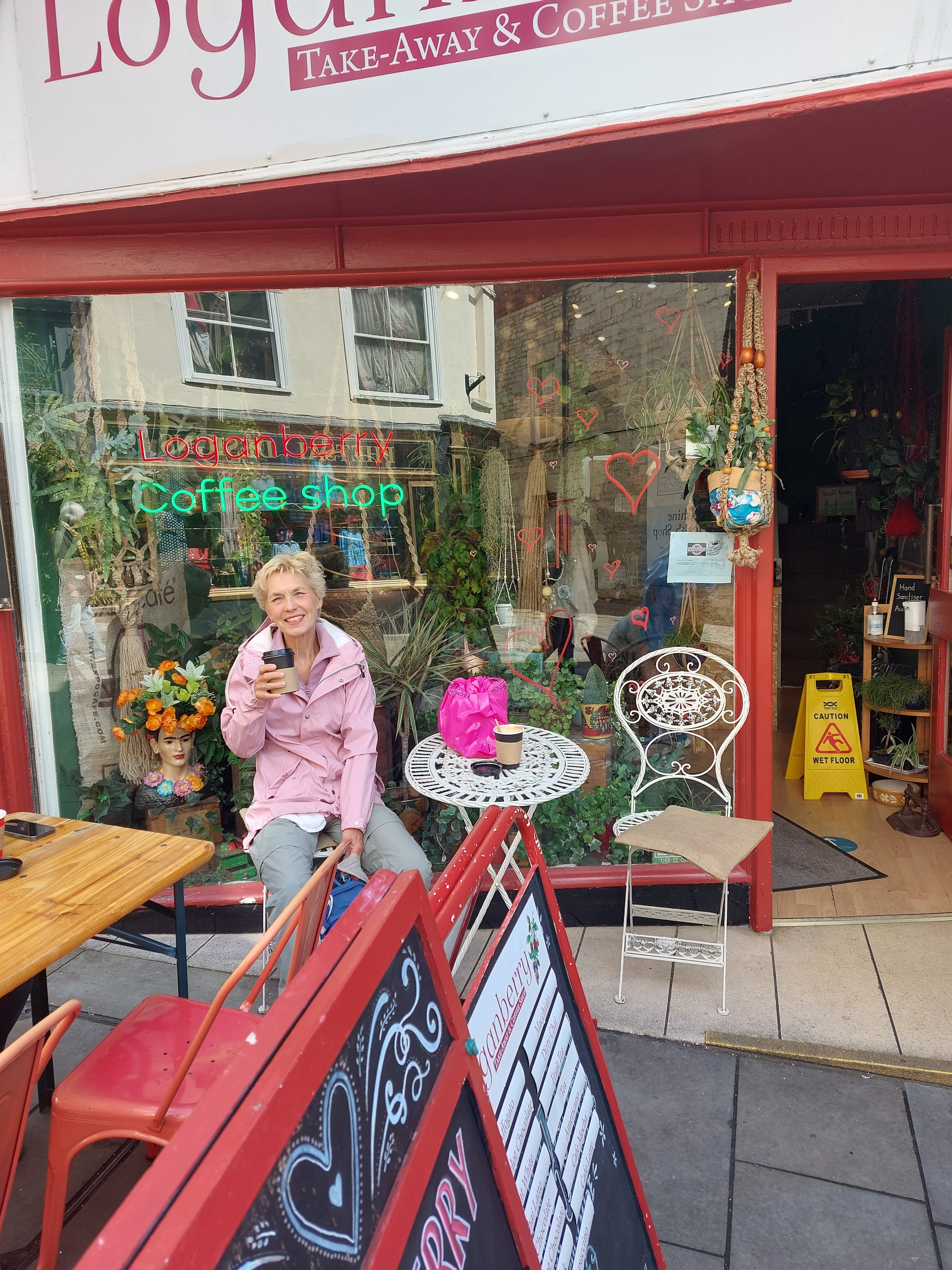 Na het laatste stuk van de route weggestapt te hebben, met wel heel veel overstapjes tussen alle weilanden, duiken we een coffeshop in. Wat hier gewoon een gelegenheid is om koffie te drinken. Prima koffie.