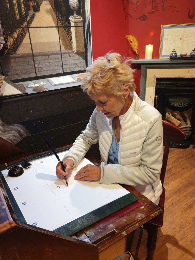 We bezoeken het Jane Austen Centre. Dat vind vooral ik heel leuk. Mooie, grappige, eigenzinnige geëmancipeerde Jane die in haar korte leven (ze stierf al op 42-jarige leeftijd in 1775)) zoveel boeken schreef die we nu nog lezen. Sense and Sensibility, Pride and prejudice, Emma etcetera. Misschien komt Mr. Darcy straks binnen, je gaat het daar bijna geloven.