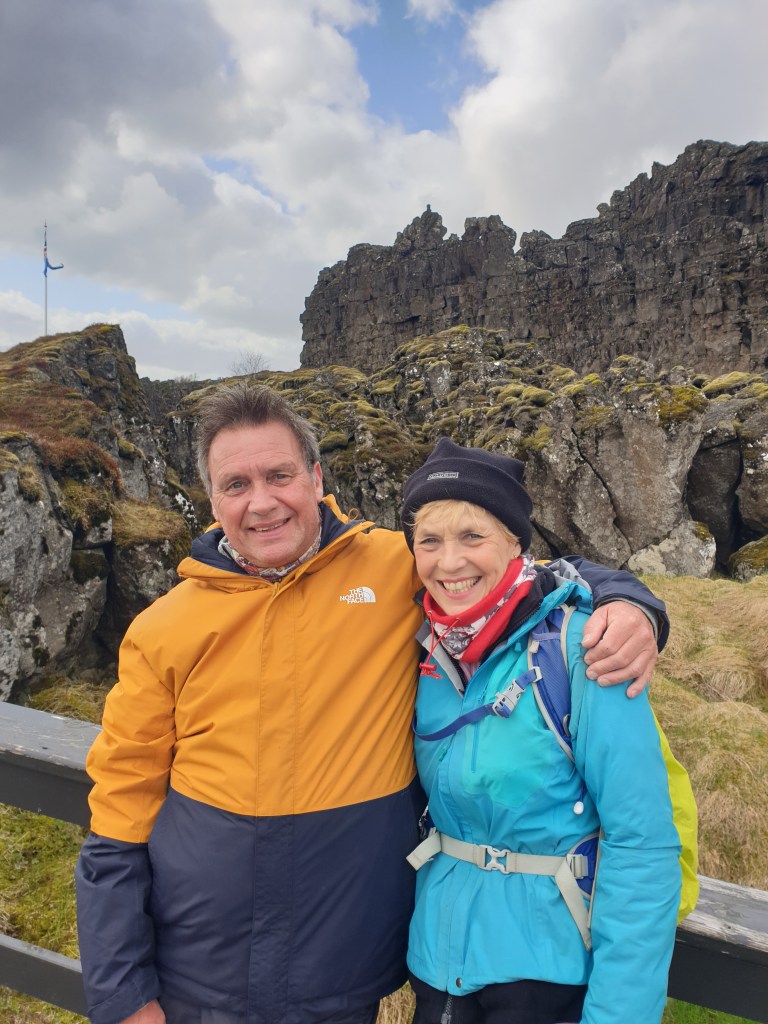 Onze eerste stop is de Silfra kloof in het Thingvellir National Park. Hier kan je heerlijk wandelen maar we gaan vooral voor de breuklijn tussen de Noord-Amerikaanse en Eurazatische tektonische platen. Deze twee platen drijven hier uit elkaar, ieder jaar 1 tot 2 centimeter verder. Een raar idee, maar realiteit. We bekijken alles, lopen door tot de waterval Öxarárfoss die meer volume heeft naar gelang er water is. Hij is niet heel erg hoog maar wel prachtig!