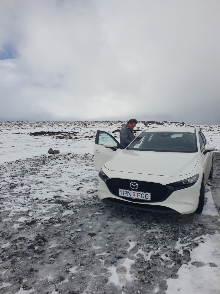 Al vrij snel gaat de asfaltweg over in een grindweg met kuilen. De weg stijgt, slingert en er staan regelmatig waarschuwingsborden met Blindhaed er op. Steeds hoger op een smalle weg met sneeuw, grind en ijs en je kan niet zien of er aan de andere kant ook een auto komt. Maar wonderschoon is het wel! Een 4 wheel drive vehikel was beter geweest maar dat stellen ze hier alleen verplicht als je ook een rivier moet oversteken. En dat hoef ik niet te doen. Eigenlijk best jammer 🙂