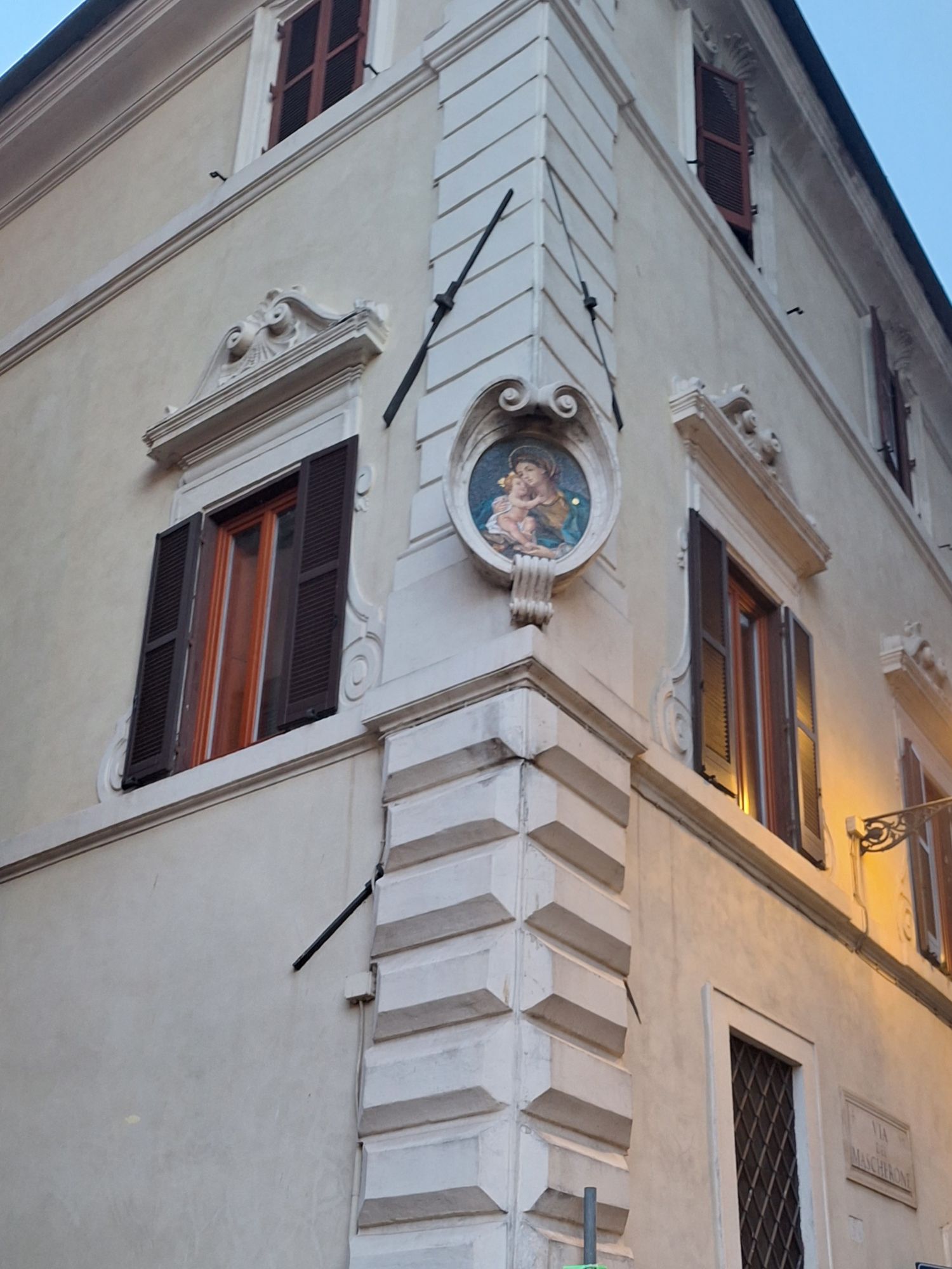 De middag is ook al zo om, een lunch, een diner met fijne muziek, even rust nemen en weer door. We hebben een paranormale avondwandeling geboekt. De spookverhalen uit de stad gaan over gifmengsters, executies van kwaadwillige of pechhebbende figuren uit het verleden. De gids laat huizen zien waar het spookt en waar ze B&B’s van gemaakt hebben. Als niemand in een huis wilt wonen kan je er blijkbaar altijd nog toeristen instoppen. Er hangen in de straten van Rome ca. 500 afbeeldingen van Maria om ons te beschermen en ik begrijp steeds meer de noodzaak hiervan. Op hoeken van straatjes zie je regelmatig een Maria afbeelding en ze lijkt je sterkte te wensen met het betreden ervan.