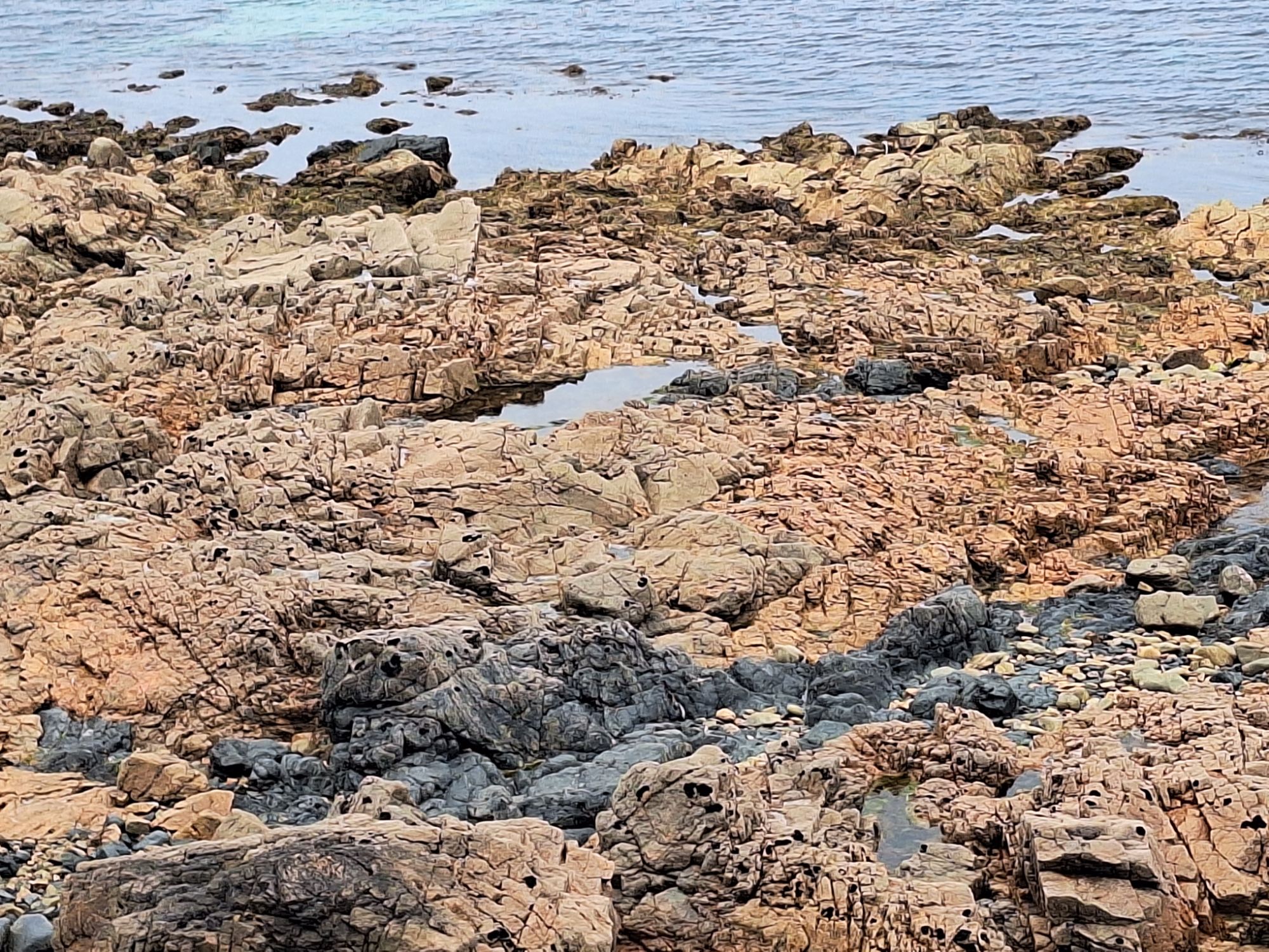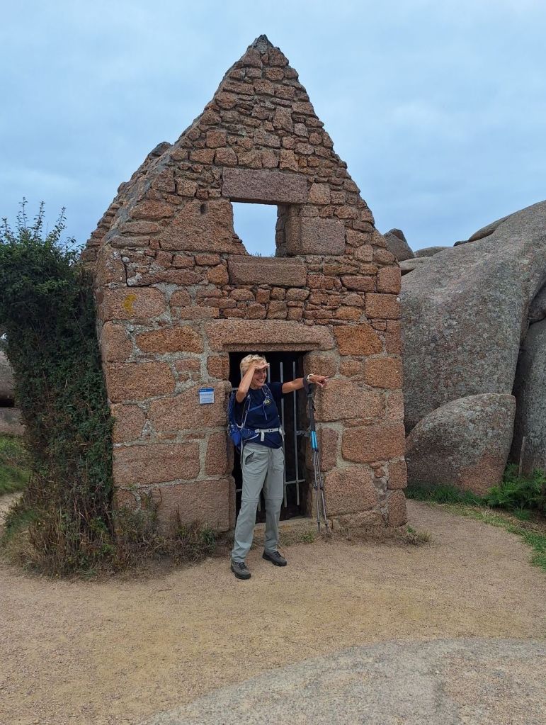 We beginnen aan onze mooie wandeltocht langs de ruige kustlijn waar het graniet roze van kleur is. In de rest van Bretagne zie je grijze graniet. Roze graniet is zeldzaam en vind je alleen hier, op Corsica en in China. Kwarts kristallen laten het gesteente af en toe geheimzinnig glinsteren. Met de zon erop moet het fabelachtig om te zien zijn.