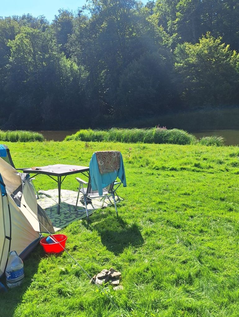 Bijna vier uur later arriveren we in Bouillon in België bij een eindeloos lange camping langs de rivier de Semois. Dit water zal uiteindelijk in de Maas eindigen. Onze campingplaats aan het water is nagenoeg even groot als een kleine camping. Het wat vieze sanitairhok staat een wandeling van zo’n 10 minuten verder. Dat gaat nooit goed ’s nachts, ik duik wel ergens bij het riet aan de oever.