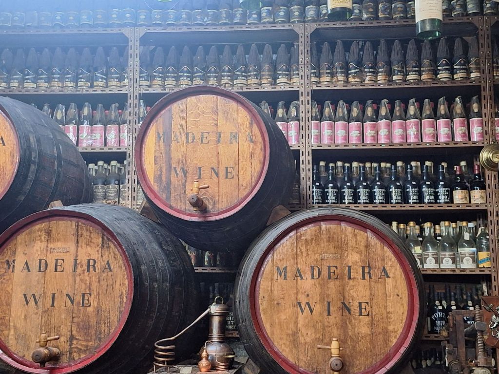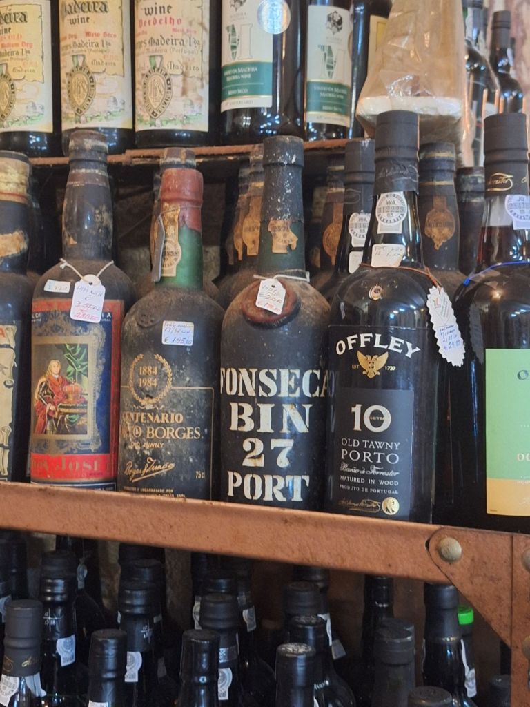 Onze enthousiaste chauffeur maakt halverwege een foto van ons en wacht ons na de afdaling in de slee beneden weer op. Hij laat ons nog véél meer plekken zien op dit eiland waarop hij duidelijk enorm trots is. Hij laat ons bij hoge uitzondering een kelder zien van een gebouw wat nu een winkel is maar eerder een kerkje was. Het gebouw staat precies tegenover de middelbare school van Funchal waar ook Virgilio op zat. Er zijn meerdere scholen op Madeira maar alle kinderen moeten  verplicht tussen hun tiende en twaalfde hier twee schooljaren volgen. Virgilio zat hier zelfs zes jaar op school en heeft pas kort geleden de kelder met flessen drank door een collega ontdekt. Hij vraagt toestemming om ons de ruimte te laten zien en we mogen met hem naar beneden. Bart belandt in de zevende hemel. Een enorme hoeveelheid oude stoffige flessen wijn en whiskey. Sommige flessen met Madeira wijn zijn van 1917. Zou die nog te drinken zijn? Alles is te koop en Bart krijgt een oude fles wiskey van me. Hij loopt er mee naar de Tuk Tuk als waren het de kroonjuwelen.