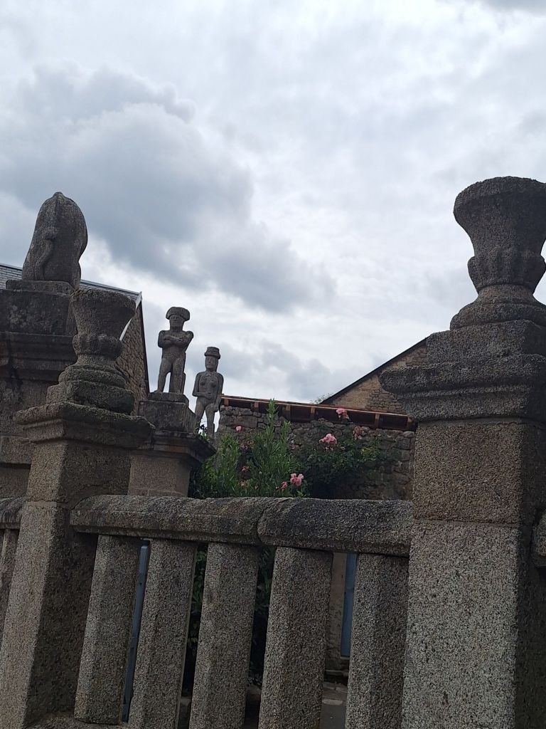 Wakker worden met regen klinkt gezellig maar is buiten de tent minder aangenaam. De zon komt volgens de weerapp morgen terug maar na een uurtje is het wel droog en vertrekken we naar Masgot. In dit piepkleine plaatsje woonde in de 19e eeuw Francois Michaud. Deze man hakte uit stukken graniet, waarvan deze hele omgeving vol ligt, allerlei beelden. Hij hakte er op los om zijn huis en leefomgeving te verfraaien. Beelden van dieren, verzonnen of bestaande mensen en fantasiebeelden. Een wonderlijke verzameling waarmee hij zijn eerste huis in dit dorpje versierde om vervolgens in huis nummer twee door te gaan en later voor nagenoeg het hele dorpje erop los beitelde.