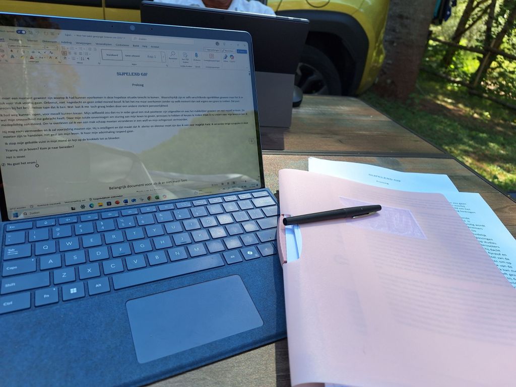 Ik wil nog twee uurtjes schrijven. Dat zou prima lukken wanneer er niet steeds een libelle op mijn schouder, stoel, laptop of aantekeningen gaat zitten. Ik vind libellen zowel mooi, fascinerend als eng. Ze zijn te groot en ze kunnen lelijk steken. Maar deze libelle is een fan van mijn werk. Zodra ik een stukje geschreven heb strijkt hij neer op de regels alsof hij wil lezen hoe het verder gaat. Libellen worden in veel culturen beschouwd als symbool voor een transformatie in je leven en staat symbool voor verandering en licht. Het is een wezen dat ons herinnert aan de vergankelijkheid van het leven en vooral bij het stilstaan van je eigen gevoelens waarbij je diep in jezelf dient te kijken.